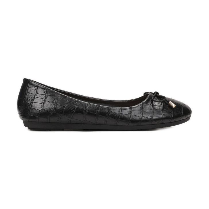 The distinguishing feature of these ballerinas is a subtle bow in the same color, which adds a girlish charm to them. The classic, round toe and the execution of eco-leather covered with a unique pattern imitating crocodile skin make them not only aesthetic, but also very durable.