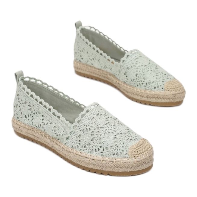 Vices 77-286-61 green espadrilles are the perfect choice for women who value elegance and comfort. These stylish shoes are set on a low platform with a jute braid, which adds charm and lightness. The round toe emphasizes their feminine character, and the openwork structure made of crochet lace creates beautiful embroidery that attracts attention.