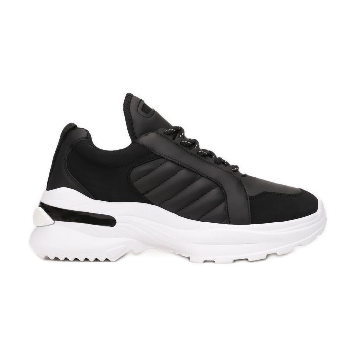 Vices 8554-38 sneakers in black are a great choice for women who value both style and comfort. These sports shoes are distinguished by their modern design, providing a fashionable look thanks to the thick, white sole with a tread. The cutout in the middle and numerous inserts, stitching and quilting add a distinctive style that fits perfectly into the latest trends.
