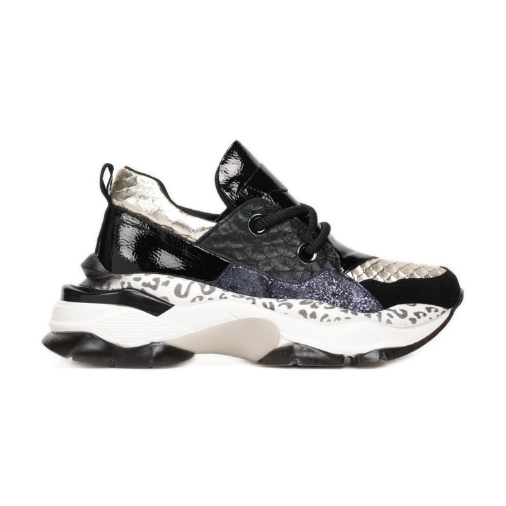 Vices 8556-38 sneakers in black with multi-colored accents are the perfect choice for women looking for fashionable and comfortable sports shoes. These lace-up sneakers with a high-top are distinguished by an original design that attracts attention thanks to the diverse inserts in different colors and textures.