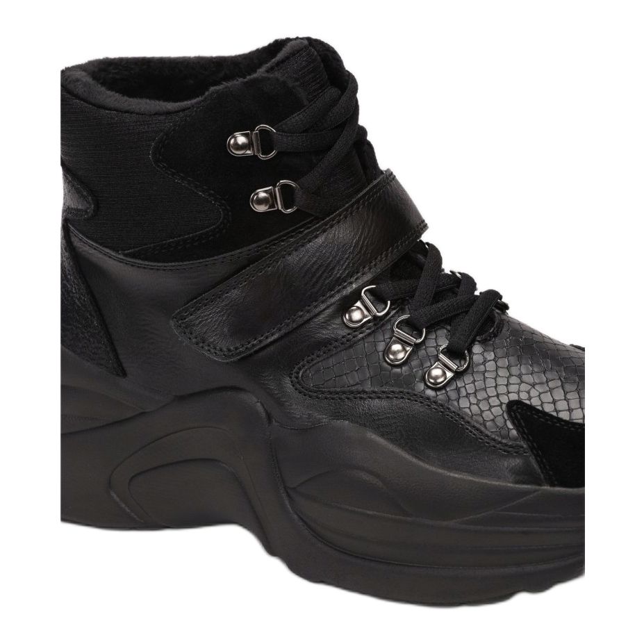 Vices 8599-38 black hiking boots are the perfect choice for women who value comfort and a fashionable look. These high sports shoes are made of high-quality eco-leather, which makes them not only stylish but also environmentally friendly. The round toe and thick sole provide not only comfort, but also adequate stability during everyday activities.
