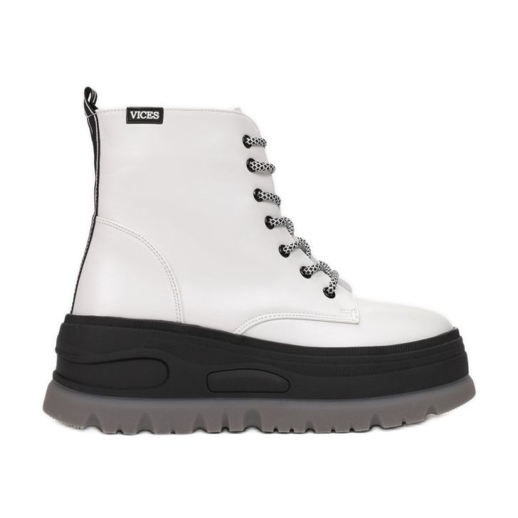 Introducing the Vices 8603-71 ankle boots in white, the perfect combination of style and comfort. These lace-up, lace-up ankle boots with a chunky sole from the KeeShoes collection are a must-have for any fashionable woman's wardrobe.