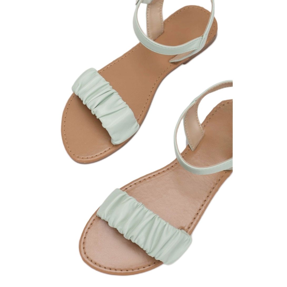 The thin sole and rounded toe make the sandals not only aesthetically pleasing but also comfortable to wear. Decorative ruffled straps at the toes add a unique character, while smooth straps around the heel and ankle provide stability and comfort. Thanks to the buckle fastening on the side, the sandals are easy to put on and take off.