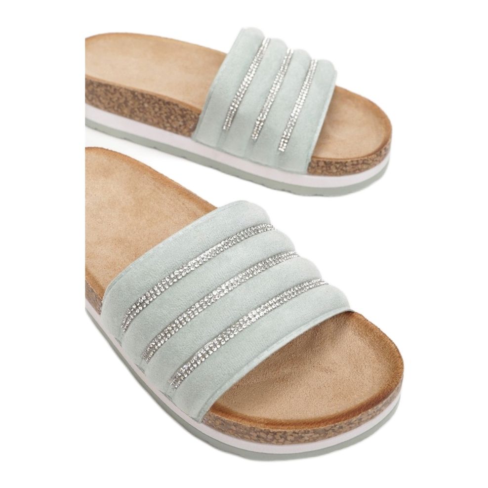 Vices CM-2085-61 flip-flops in green are a great choice for women looking for fashionable and comfortable everyday shoes. Made of high-quality ecological suede leather, they provide not only comfort of wearing, but also an elegant look. Additionally, decorated with zircons and jets, they add a unique character to any styling.