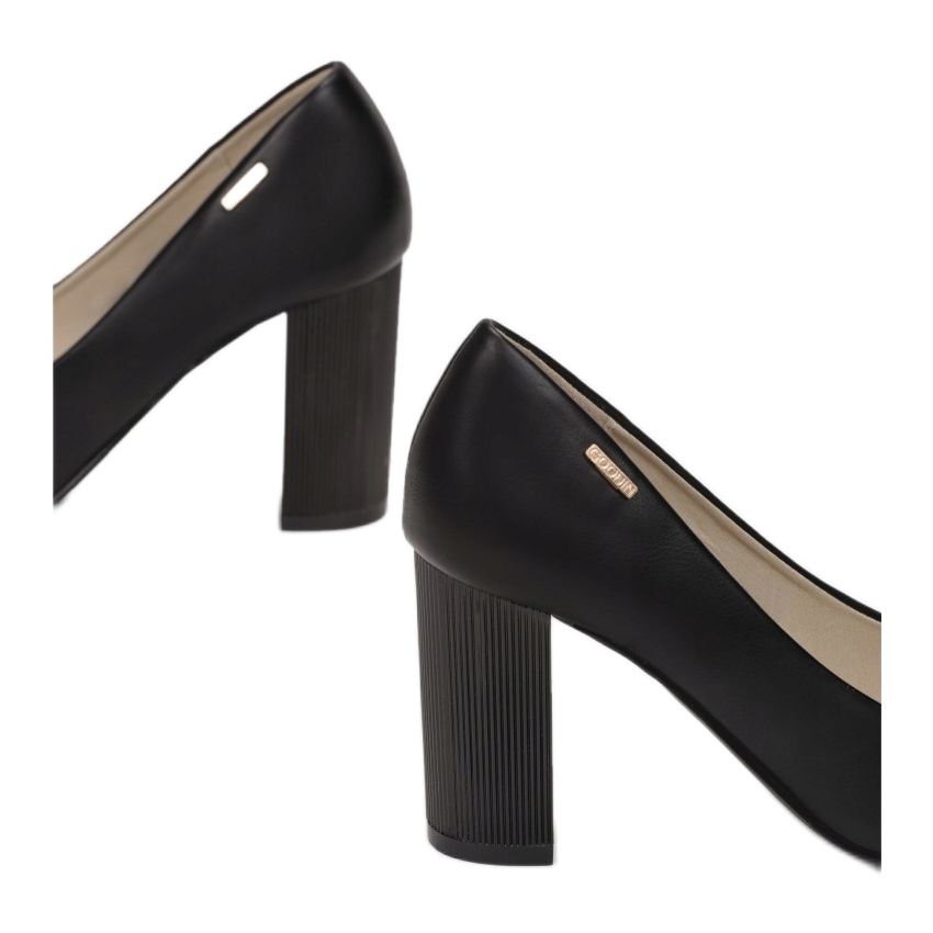 Made of high-quality eco-leather, the pumps are not only aesthetic but also practical. The natural leather insole ensures comfort of wearing even for a longer period of time. The heart of this model is a 9-centimeter column, which adds subtle elegance, and the pointed toe allows for optical lengthening of the legs.