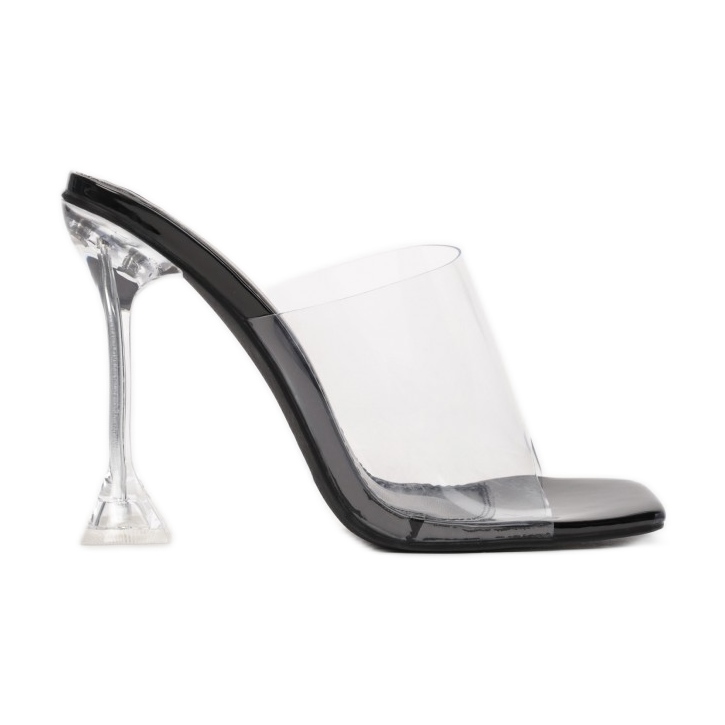 Discover elegance and style with the Vices HP300-38-black mules! These unique mules with a transparent hourglass heel, 11.5 cm high, are a great choice for every fashionable woman. Their rounded toe and open toe provide maximum comfort and freedom to wear.