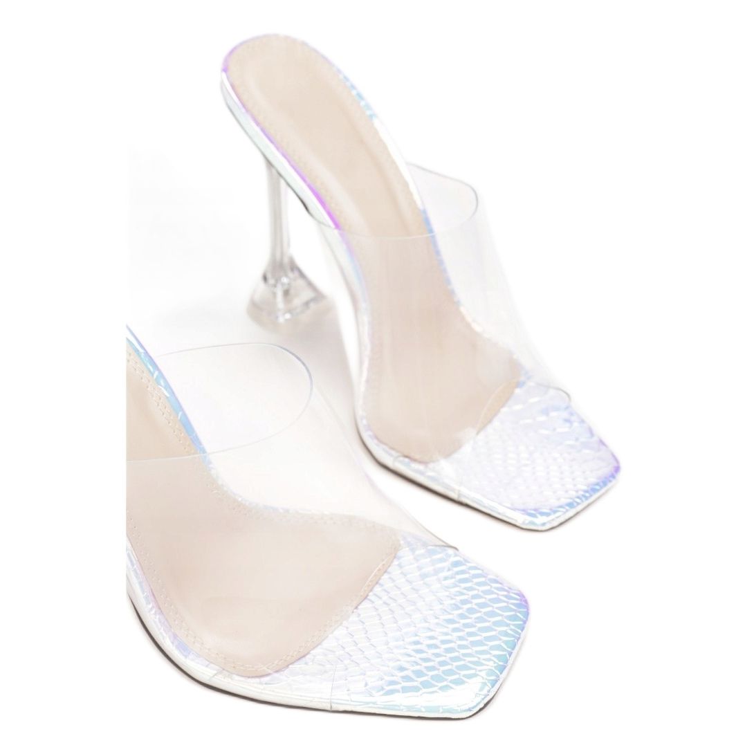 These flip-flops feature a rounded toe and open toes, allowing your feet to breathe freely and revealing an elegant manicure. The transparent silicone strap perfectly adapts to your foot, while the metallic insert decorated with fish scale embossing adds a unique character.