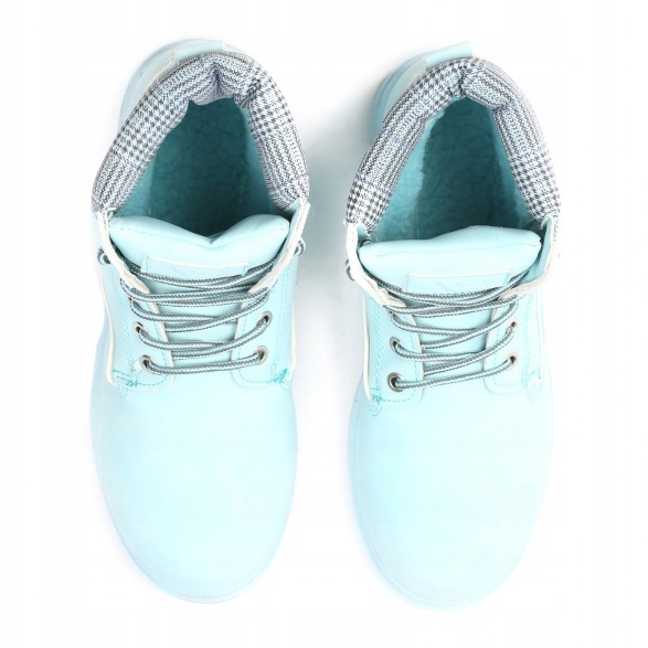 The Vices JB010-12 women's ankle boots in blue with grey accents are a perfect choice for autumn and winter days. The high upper, reaching above the ankle, provides not only a fashionable look, but also additional support and protection against the cold. The stylish design of the ankle boots is distinguished by a delicate blue shade, which perfectly matches the grey grid on the top, and the laces in the same colour add harmony.