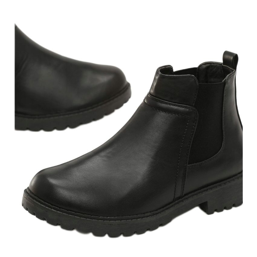 We present the Vices T125-1A-38 ankle boots in a classic black color, which are the perfect choice for women who value elegance and comfort. These flat Chelsea boots, made of high-quality eco-suede, combine style and functionality, and their slightly insulated construction makes them ideal for colder days.