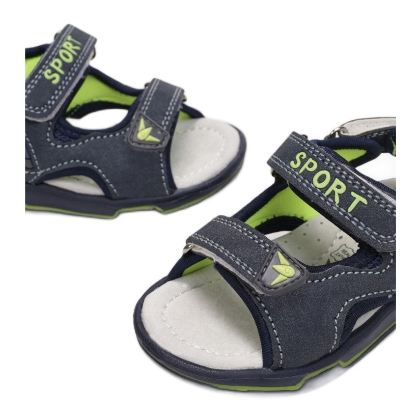 We present the Vices T54-36-93 children's sandals in a unique blue color, perfect for summer days. Set on a thick, flat sole, they provide stability and comfort. The open, round toe allows for free air flow, which makes your feet feel fresh all day long.