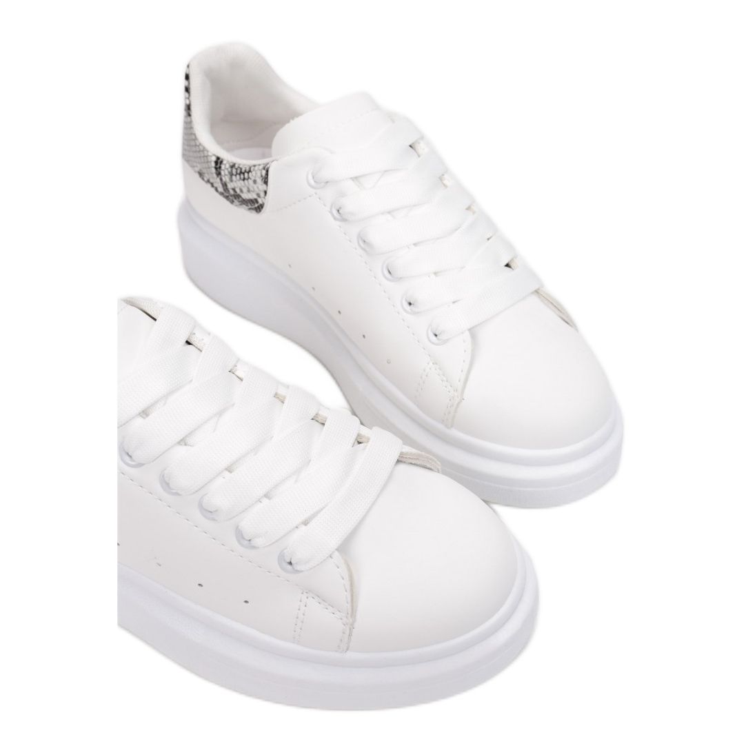 We present the unique Vices WH3106-472-snake sports shoes in white, which perfectly combine comfort with fashionable design. These trendy sneakers on a 5-centimeter, flat platform are the perfect solution for women who value style and comfort every day.