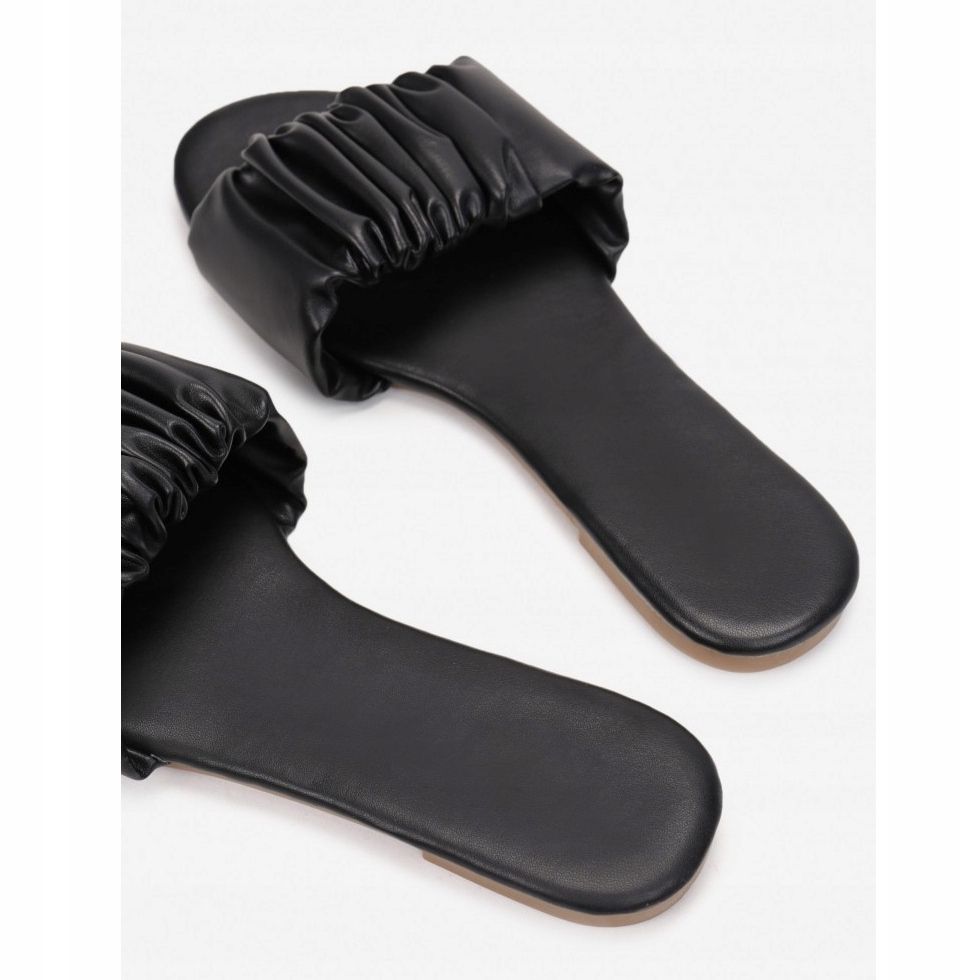 Discover comfort and style with the Vices WL14-38-black slides in an elegant black color. These slip-ons are the perfect combination of comfort and modern design. Their open toe and wide strap decorated with subtle gathering add a unique character to the whole, making them suitable for both everyday and more casual stylings.