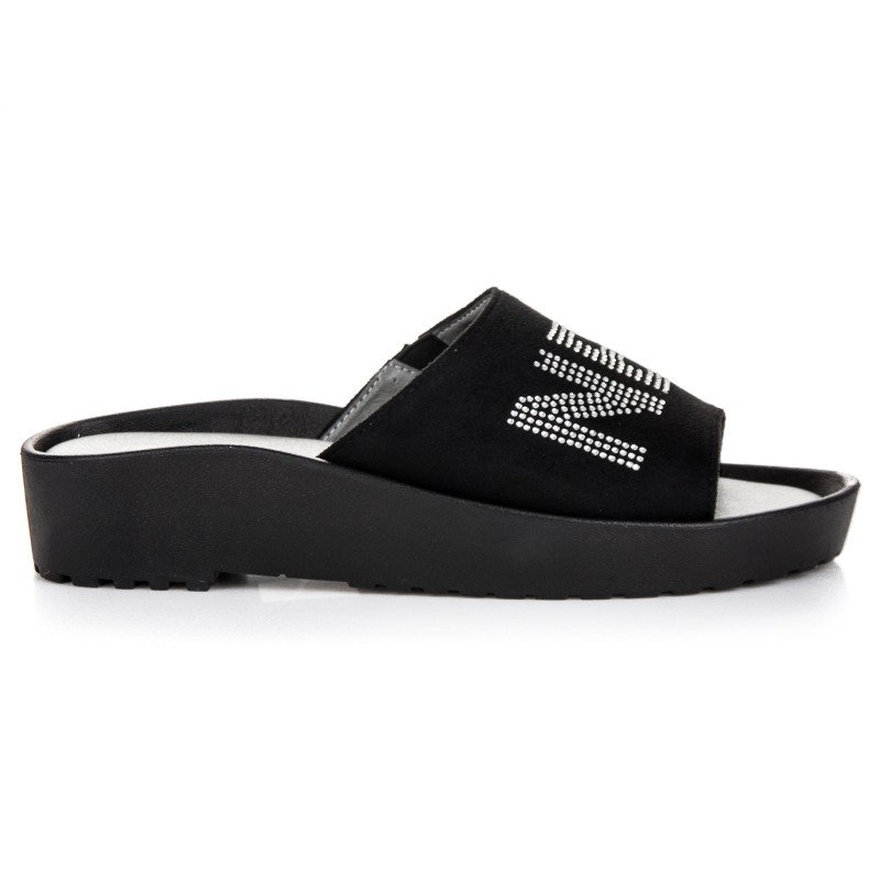Thanks to their classic black color, Vinceza flip-flops are universal and match many colors and patterns of clothing. Without a toe and with a low platform (height 3 cm), they perfectly fit into the latest trends, while guaranteeing comfort during use.