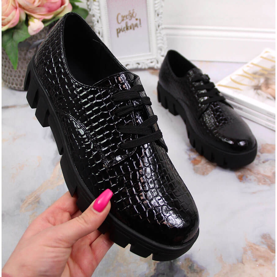 Modern and effective Vinceza shoes are a combination of fashionable gloss varnished ecological leather in KROK. A pattern with wearing comfort. The model with a massive, block heel and a subtle platform ensures stability and optical extension of the silhouette, working well in urban stylizations every day.