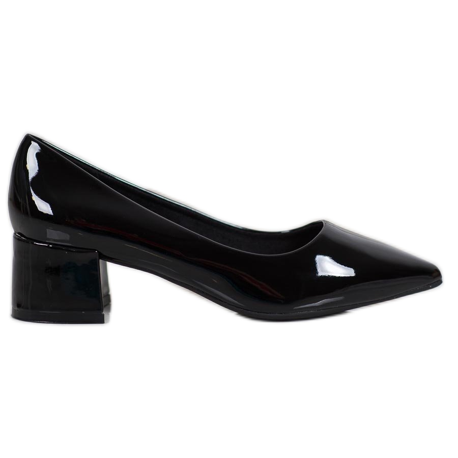 Discover elegance and style with patent VINCEZA pumps in classic black. These unique shoes, made of aesthetic leather-like material, are the perfect choice for any occasion - both everyday and special occasions. Their patent finish gives them a chic character, and the stable 5 cm block heel ensures comfort all day long.