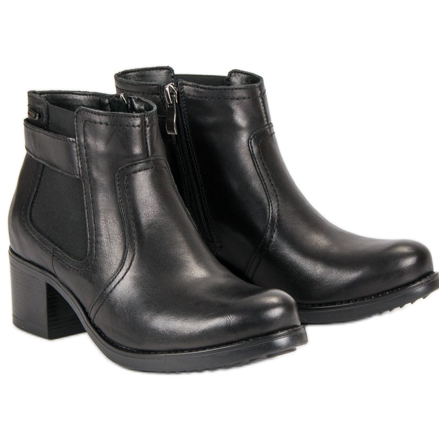 Discover elegance and comfort with VINCEZA black leather ankle boots. These casual ankle boots with a 6 cm block heel are the perfect solution for everyday wear, combining a fashionable look with comfort. Made of high-quality natural leather and textile inserts, they provide excellent quality and durability.