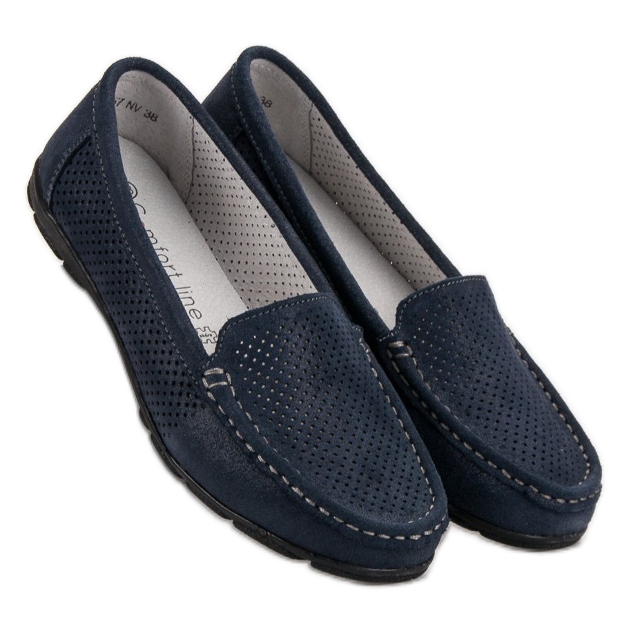 We present the VINCEZA openwork moccasins in an elegant navy blue color, which are a perfect combination of comfort, style and high quality of workmanship. These unique shoes were created for women who want to emphasize their personality while enjoying the comfort of wearing.