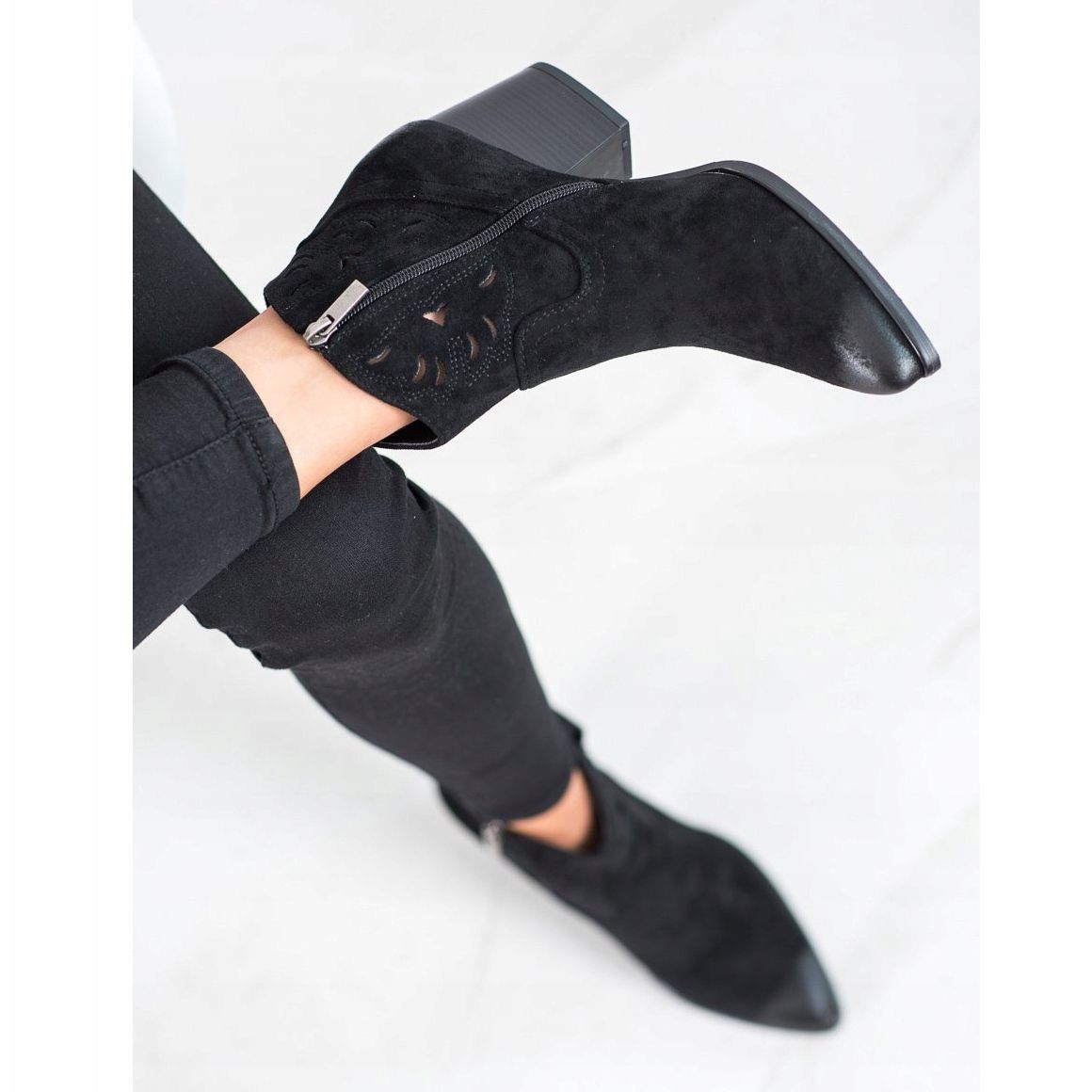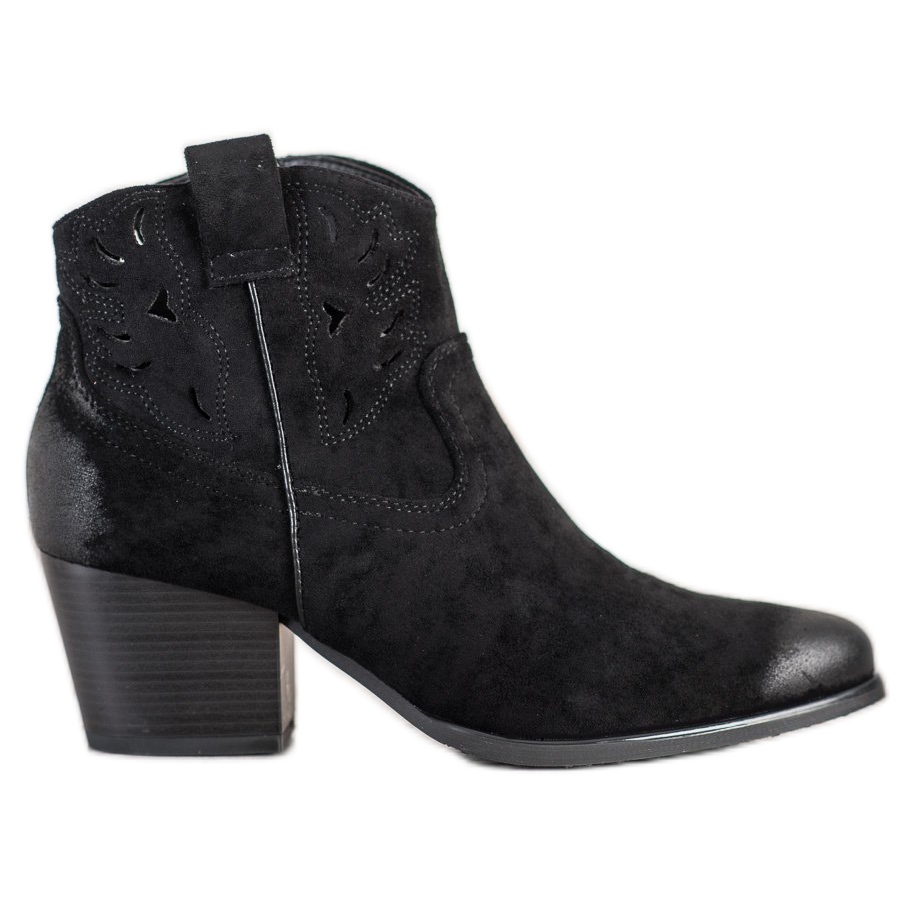 Discover a unique style with VINCEZA openwork cowboy boots in an elegant black color! These women's ankle boots are a great choice for women who value fashion and comfort in one. Made of ecological suede leather, the cowboy boots look extremely stylish, and their openwork pattern adds lightness and originality.