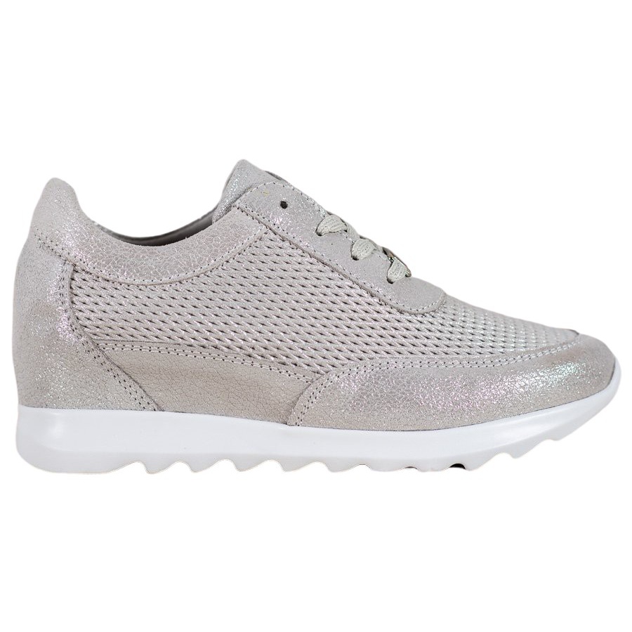 The shiny VINCEZA Leather Sneakers in a light grey shade are a great choice for modern women who value style and comfort. These leather shoes not only look great, but also provide incredible lightness and comfort, making them an ideal solution for everyday and training.