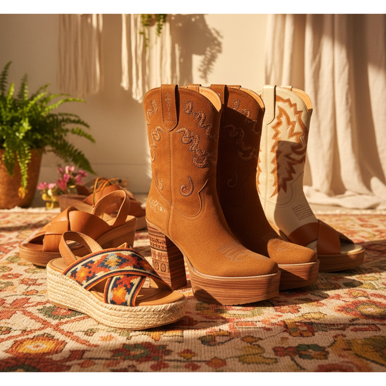 Cowboy boots, i.e. boots inspired by the footwear of cowboys from the Wild West, also have their roots in the fashion of the 1970s. They are characterized by a pointed toe, slanted heel and decorative stitching. Wear them with bootcut jeans or long, flowing boho dresses for an authentic look of the era.