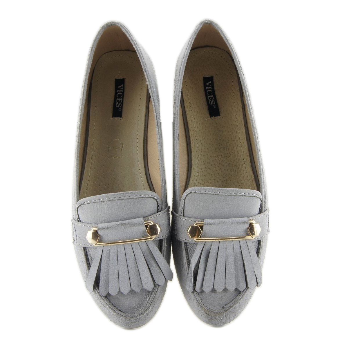 Vintage loafers 3052 Grey are the perfect choice for women who value a combination of classic style with modern accents. Made of soft eco-leather, these grey shoes are characterized by subtle ruffles, giving them an original vintage look. Details in the form of fringes on the toes and an elegant gold decoration add chic and make them fit perfectly with many styles.
