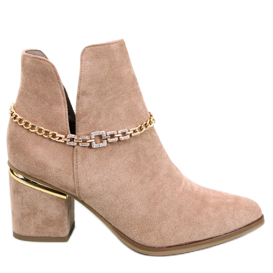 This model impresses with its fashionable cut-outs and spectacular chain decorated with shiny stones, which add to its unique character. Narrowing toes make the foot look graceful, and the whole thing looks extremely feminine and stylish. Thanks to the smooth texture combined with ecological suede, these boots perfectly fit into the trends of the upcoming season.