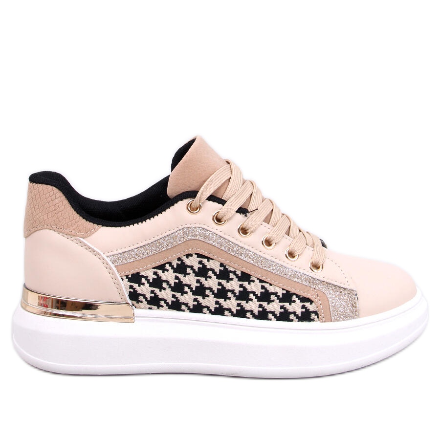 Here are the Volyne Beige women's houndstooth sneakers that will definitely catch everyone's attention! These lace-up sports shoes with a high sole combine classic style with the latest trends. The houndstooth pattern, a combination of glitter and metallic inserts make them a real must-have in every wardrobe.