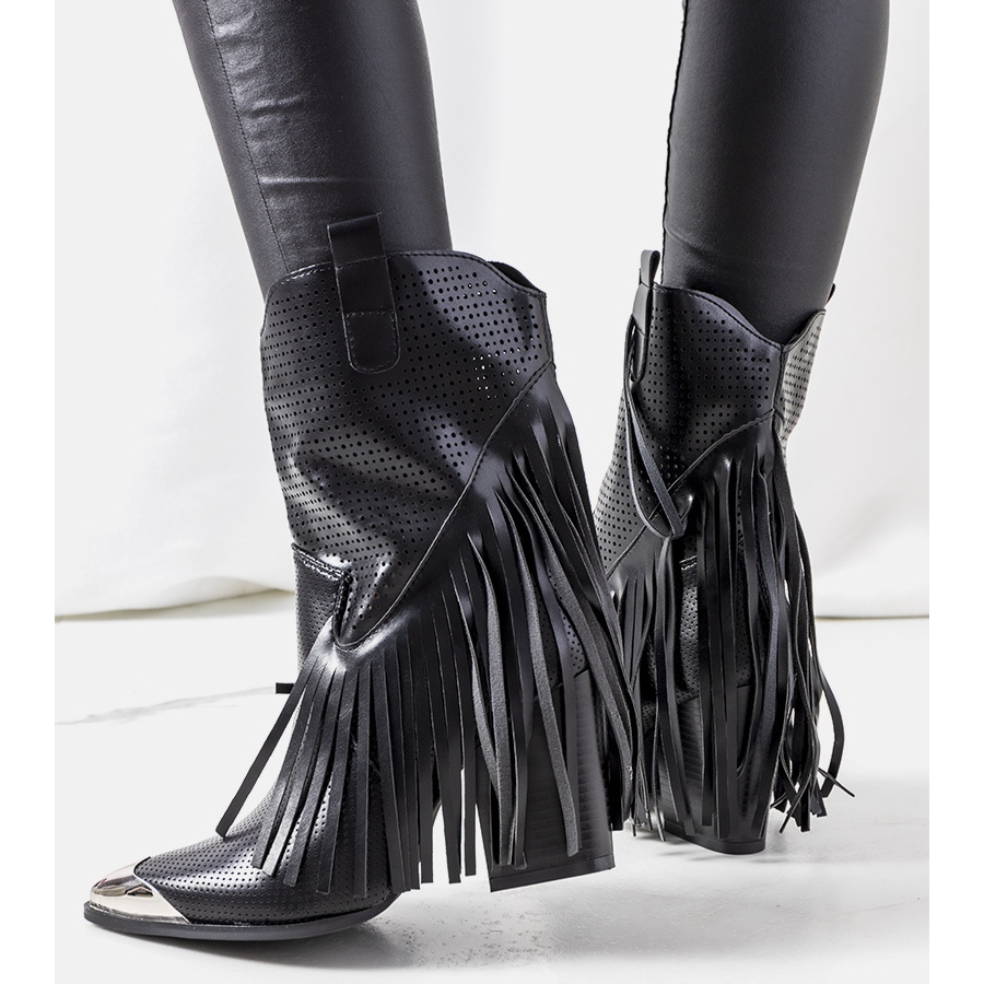 Made with comfort in mind, these models are made of high-quality ecological leather, which is not only environmentally friendly, but also guarantees comfort even when worn for a long time. Their cut styled like American cowboy boots will provide an original look - the fringes add movement, and the pointed metal toe sophisticatedly accentuates this extremely popular aesthetic.
