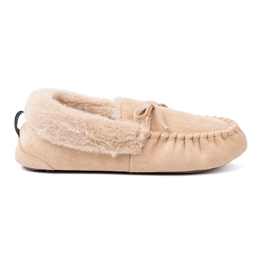 Shelvt Shelvt Warm beige slippers such as loafers with a bow