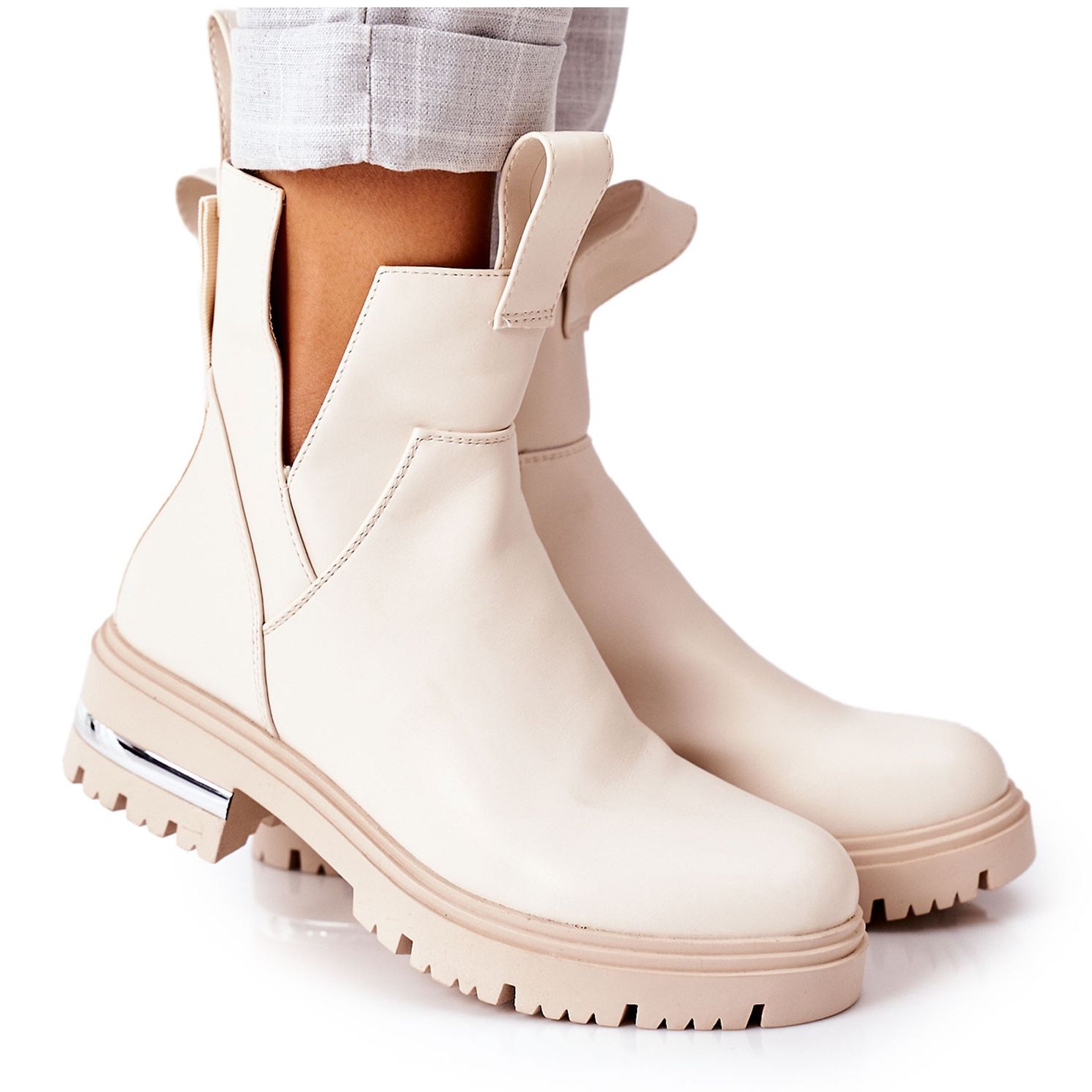 Discover exceptional style and comfort with the insulated PS1 ankle boots in beige from the Rock It collection. These elegant women's shoes are carefully crafted from high-quality eco-leather, making them both attractive and environmentally friendly.