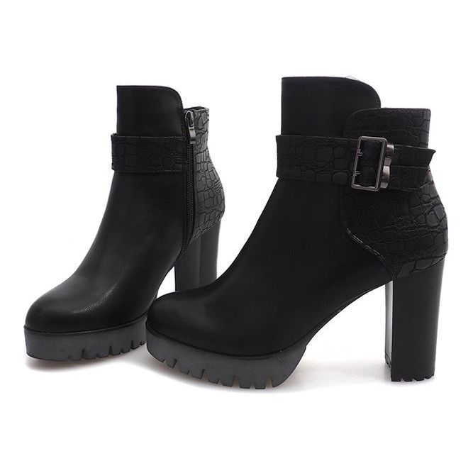 The 8 cm heel height on the block guarantees stability and freedom of movement. The round toe and lack of patterns give them an elegant and timeless character that is easy to match with various styles. The zip fastening makes them easy to put on and take off, making them practical for everyday use.