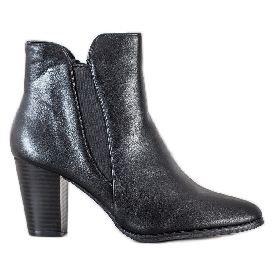 Made of high-quality ecological leather, the boots were designed with autumn and winter in mind. The upper, reaching below the ankle, provides adequate insulation and comfort of wearing, and the 7.5 cm high post-shaped heel adds elegance and emphasizes the silhouette. The design of the shoes is complemented by a zipper on the side, which not only allows for easy putting on, but also gives them a modern character.