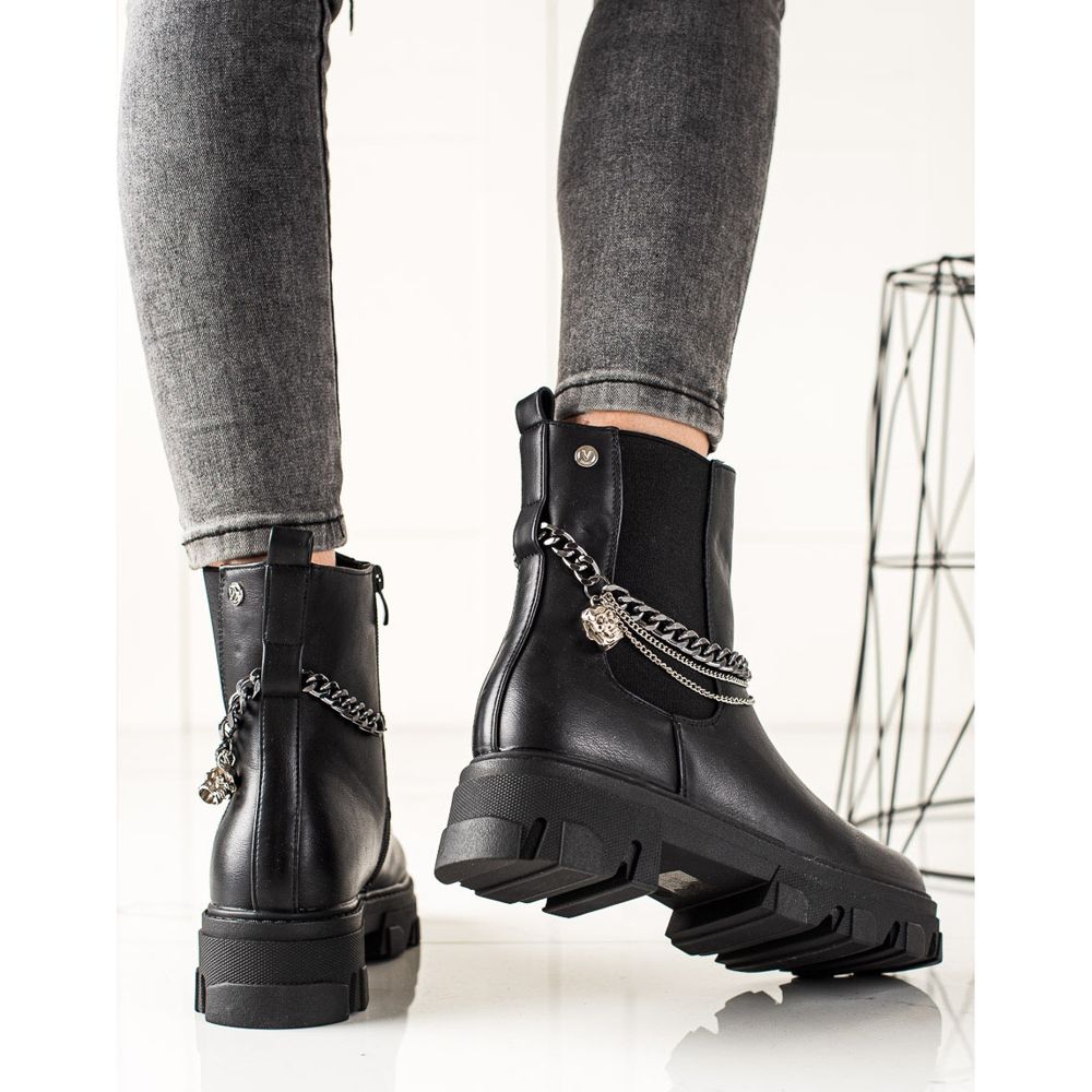 Black Goodin ankle boots with a decorative chain are a fashionable accent that will perfectly complement any styling. Whether you are planning a walk around the city or a meeting with friends, these ankle boots will be a great companion for any occasion.