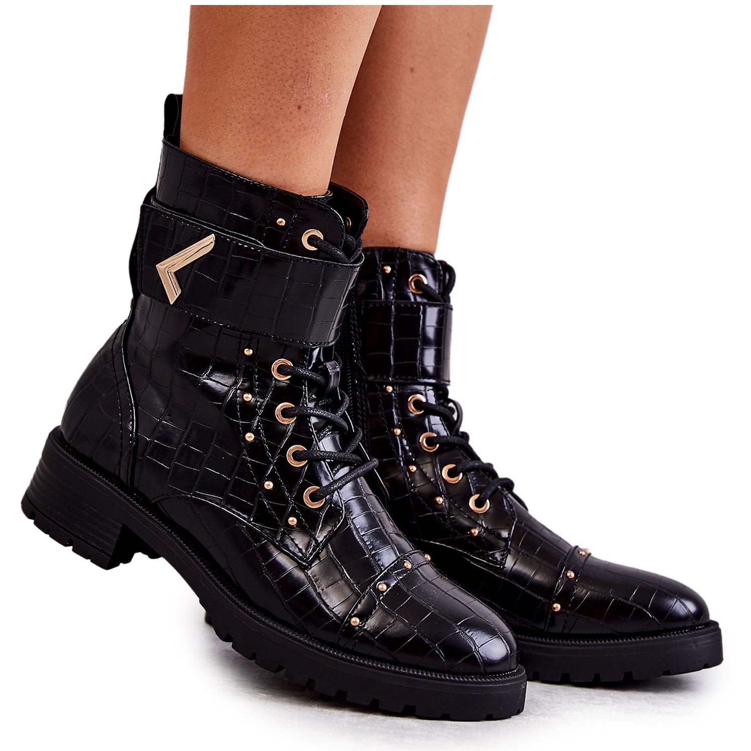 We present beautiful PG1 ankle boots, which combine style and functionality in comfort. Made of high-quality ecological leather, these black snakeskin ankle boots are a perfect choice for the autumn/winter season. The insulation in the form of a soft shoe blanket provides warmth even on the coldest days.