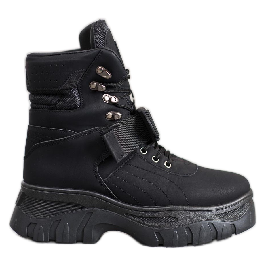 Practical lacing allows the boot to perfectly fit the foot, and the additional buckle fastening is both a decorative and functional element, enabling quick putting on and taking off the shoes. An insert made of a different material guarantees warmth and comfort of use.