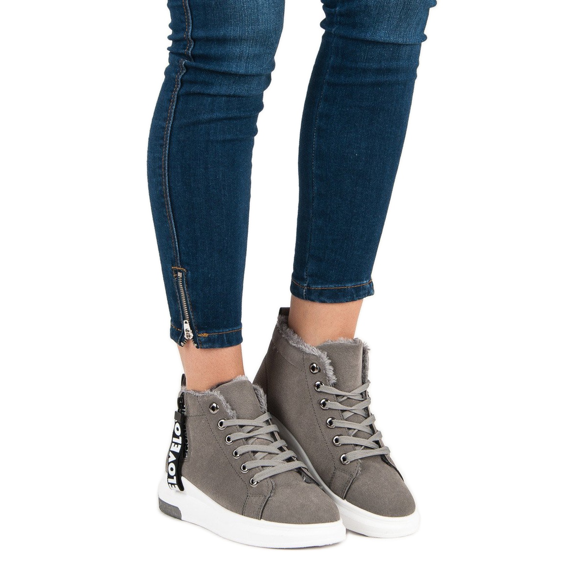 The approaching winter does not mean that you have to give up comfort and style. Insulated gray sneakers from the renowned brand Inna are a great solution for women who prefer a sporty look even on cold days. These high sneakers combine fashionable design with functionality, making them a unique element of any wardrobe.