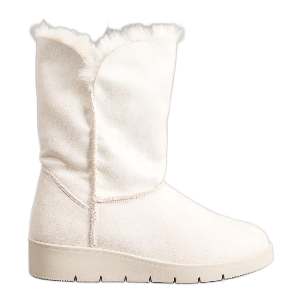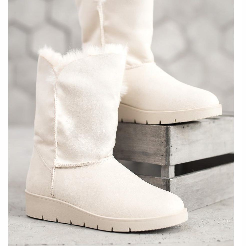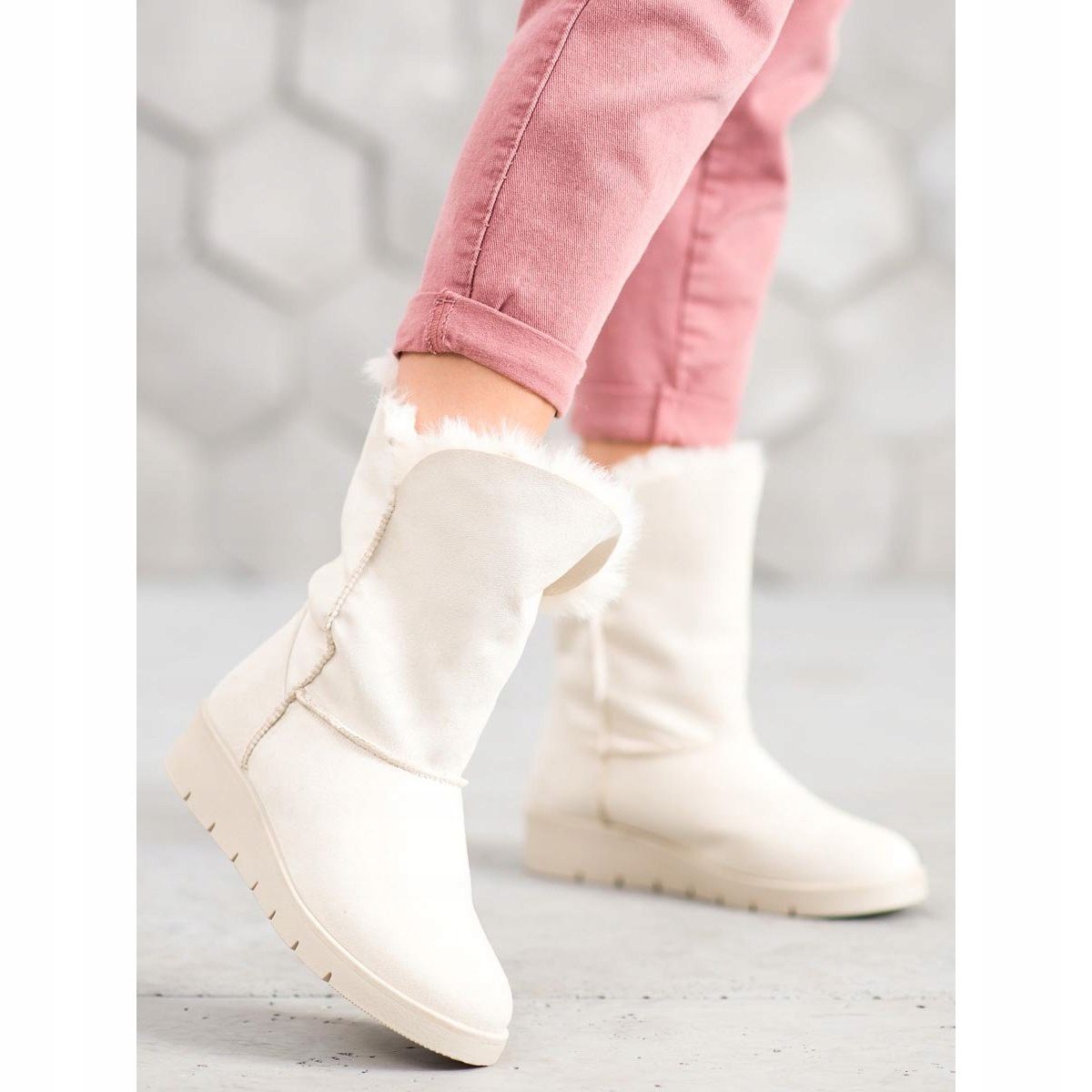 Kylie Warm Mukluki in white are synonymous with fashionable minimalism, which fits into the latest trends. Thanks to the width of the upper from 34 to 36 cm and the possibility of rolling up the upper, you can easily adjust them to your figure. In turn, the synthetic sole with tread guarantees stability and grip on various surfaces.