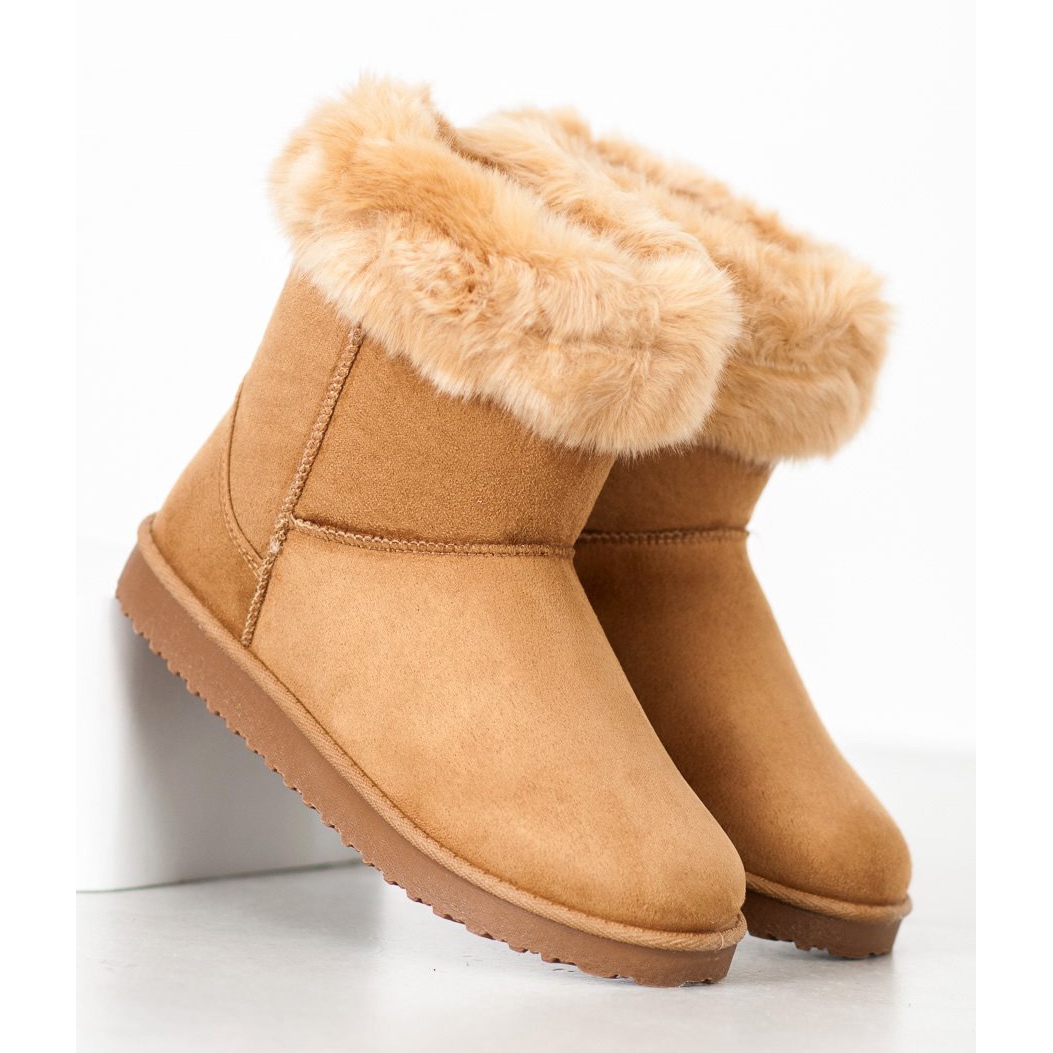 We present warm fur mukluks in an elegant brown color, which are the perfect solution for colder days. These slip-on shoes, made of high-quality leather-like material, combine style with functionality, working well in both urban conditions and more wintery circumstances.