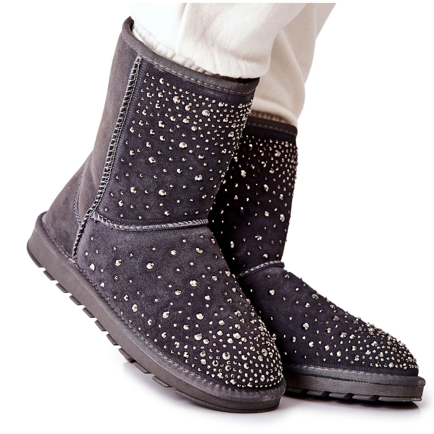 Stylish and warm snow boots that combine women's style with practical solutions for the winter. Made of natural suede, decorated with shimmering rhinestones - perfect for frosty but effective outputs.