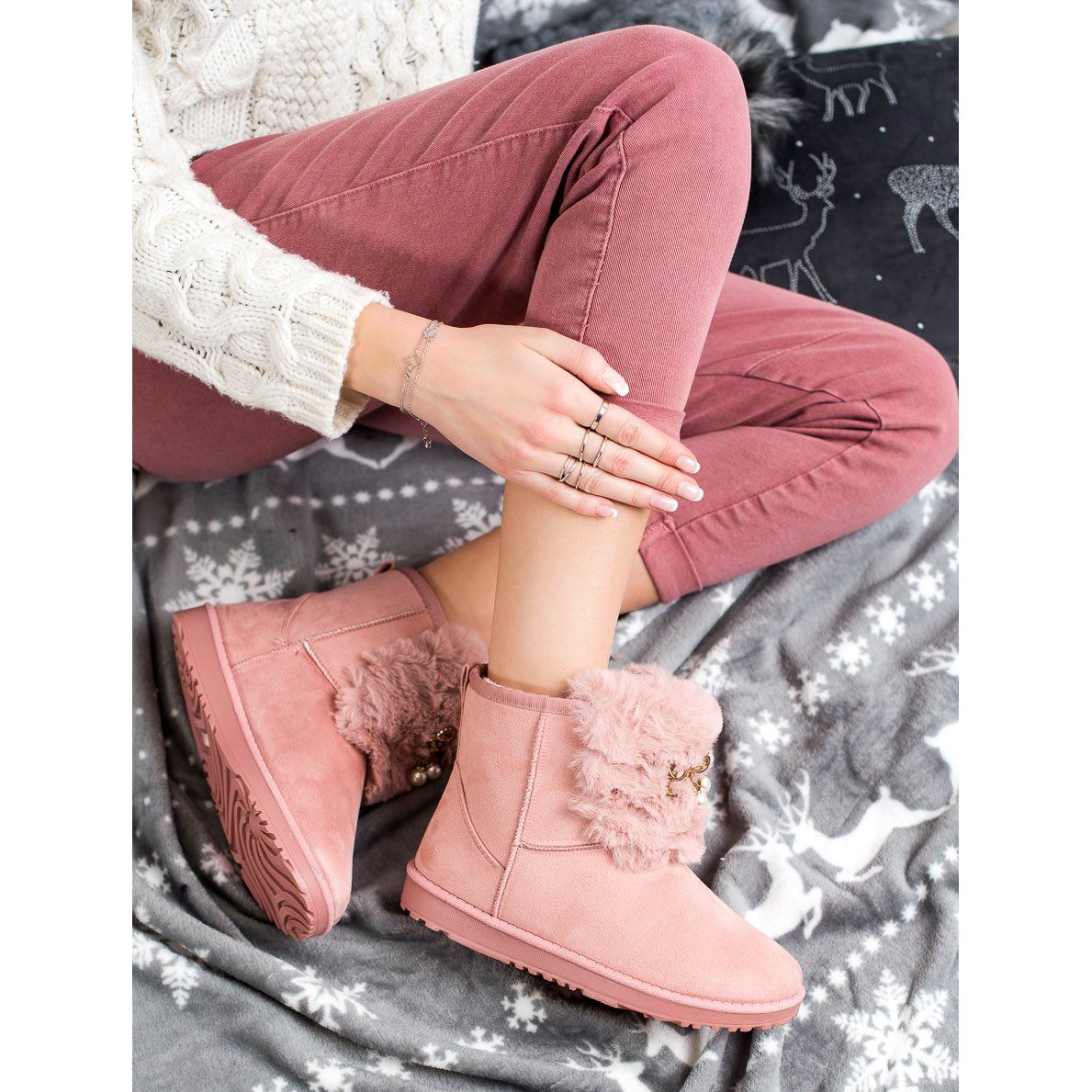 Details: Queentina Warm Mukluki With Ornament pink