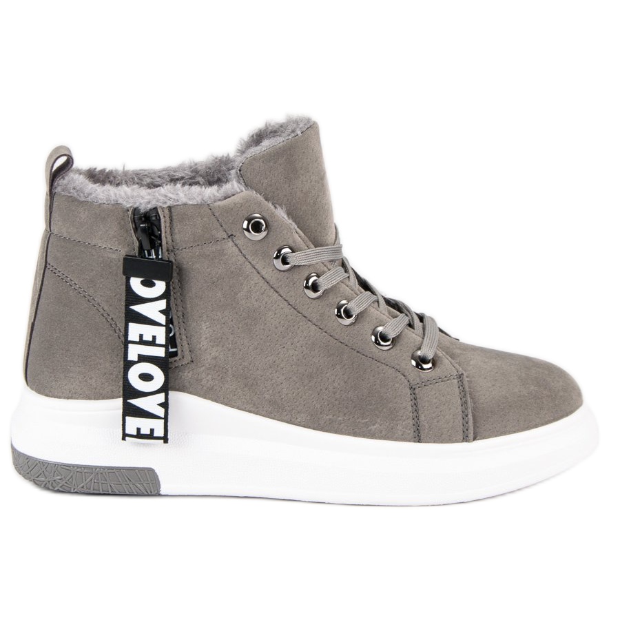 Insulated gray sneakers are a great choice for women who value style, comfort and functionality. These unique shoes combine a sporty character with an elegant design, making them an ideal solution for colder days. Made of high-quality ecological suede leather, they provide not only an attractive appearance, but also durability and comfort.