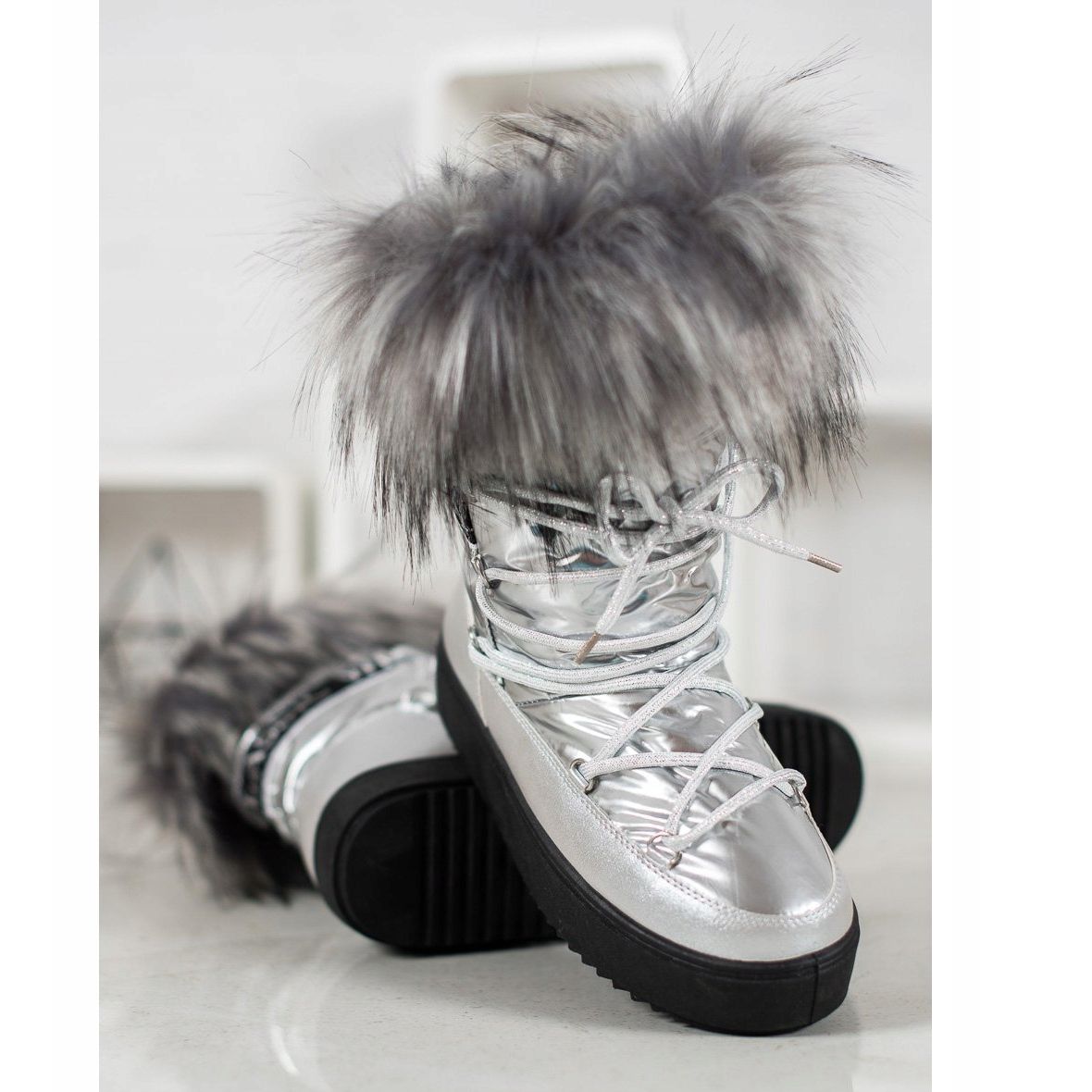 We present the stunning Bella Paris women's snow boots in grey, which are a real must-have in every modern woman's wardrobe. Thanks to their unique design and spectacular finish, these warm snow boots attract attention and provide comfort even on the coldest days.