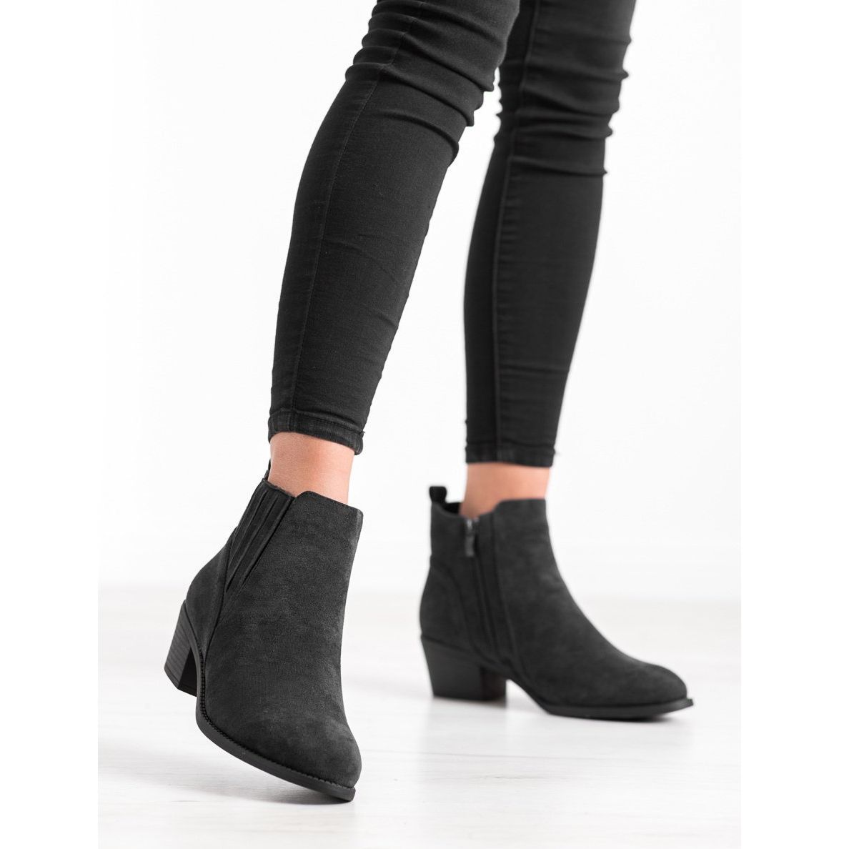 Made of ecological suede leather, the boots not only look great, but are also environmentally friendly. The soft, closed heel counter and round nose ensure comfort of wearing all day long. Internal insulation makes the foot feel comfortable even on colder days.
