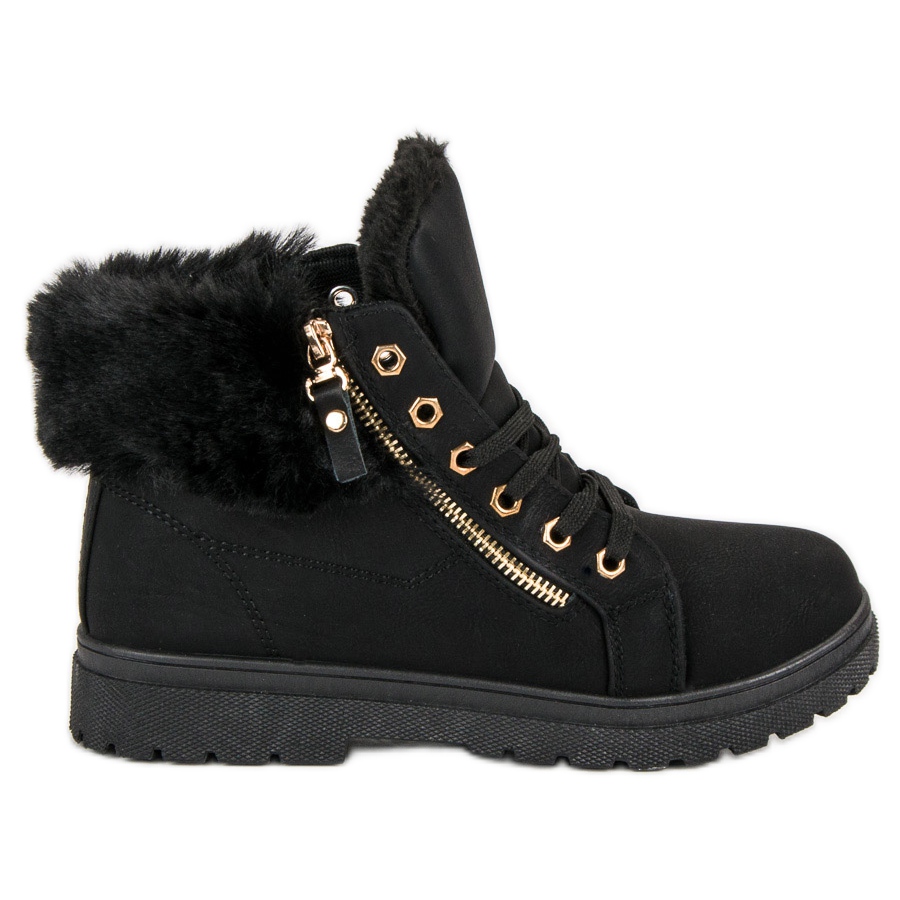 The upper of the shoes is decorated with fur, which emphasizes their feminine and girlish character, and also protects against the cold on cold days. Additionally, the decorative zipper and lace-up fastening make the boots not only easy to put on, but also allow for a perfect fit to the foot. The flat heel with a height of 2.5 cm provides comfort during all-day wear, making them an ideal choice for active days.