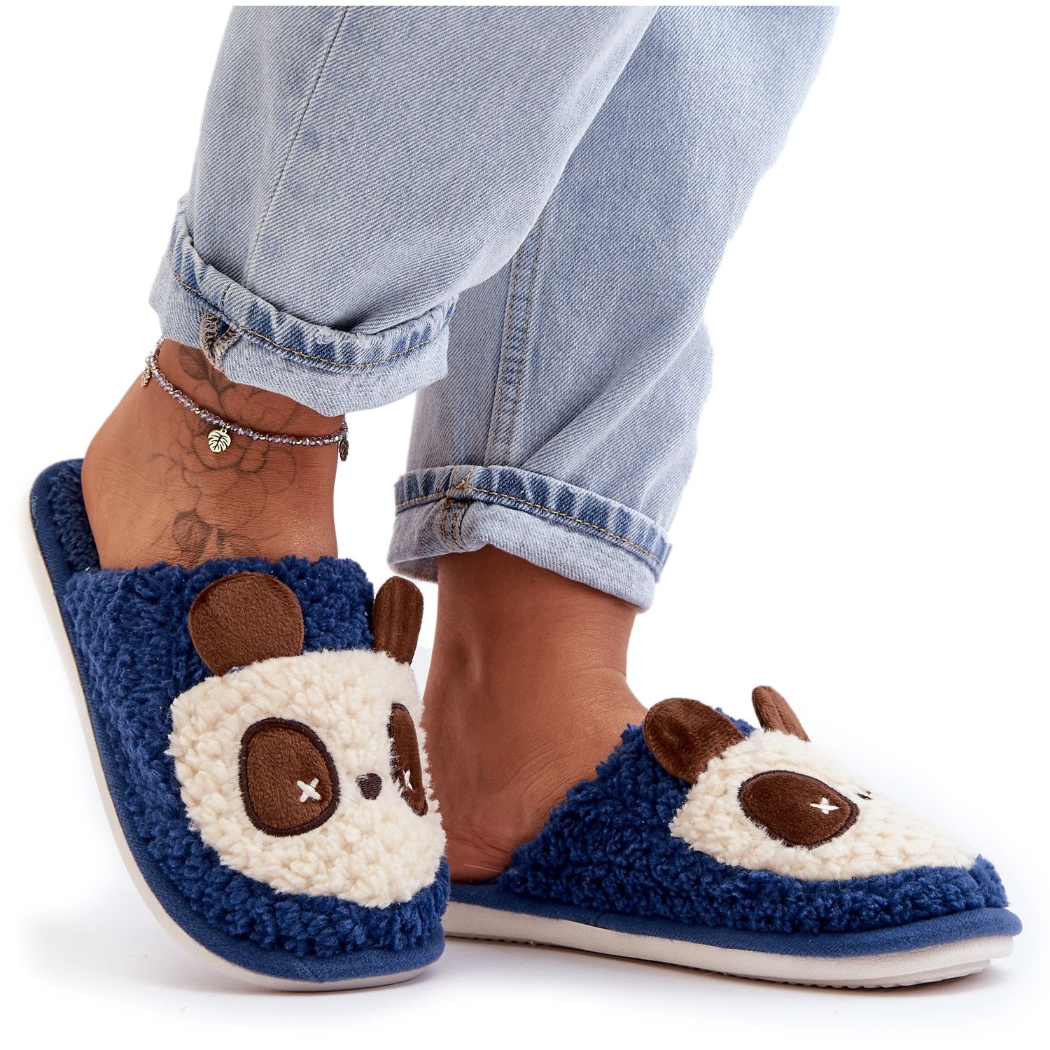 Warm women's slippers navy blue priseth (Panda slipper model with fur)