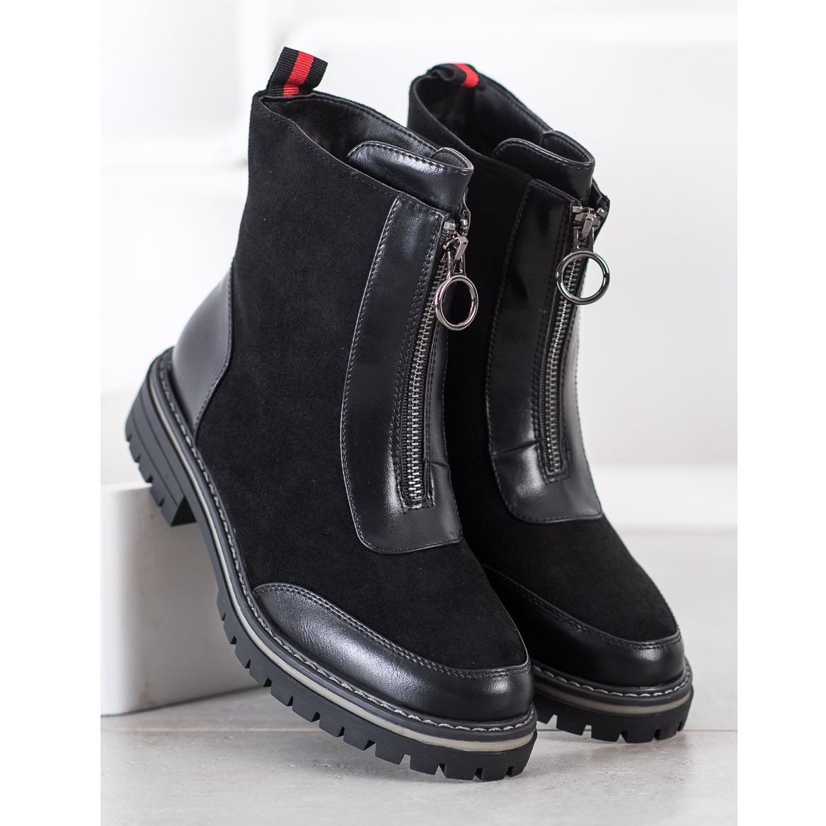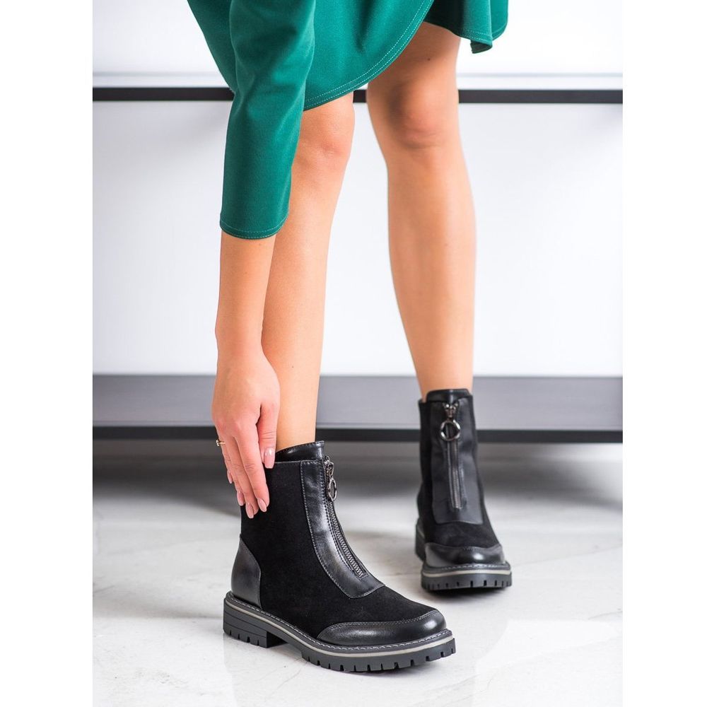 Discover exceptional comfort and style with warm zip-up work boots from the renowned manufacturer J. Star. These black women's ankle boots are the perfect choice for cold days, combining functionality with a fashionable look. Made of high-quality eco-leather, they feature a round toe and a built-in, stiffened heel counter, which provides excellent support for the feet.