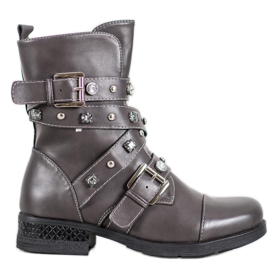 **Kayla Warm Work Boots With Rhinestones Gray – Elegance and Comfort for Everyday Use**