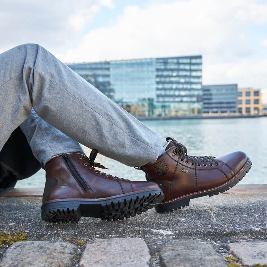 Waterproof men's winter boots insulated with sheep's wool, Rieker F3602-25 brown, is a unique product that is a perfect combination of functionality and style. The Rieker brand has been recognized for years thanks to high-quality footwear that combines modern technologies and comfort of use. The presented model is perfectly suited to the needs of men looking for trekking shoes that will work well in winter conditions.