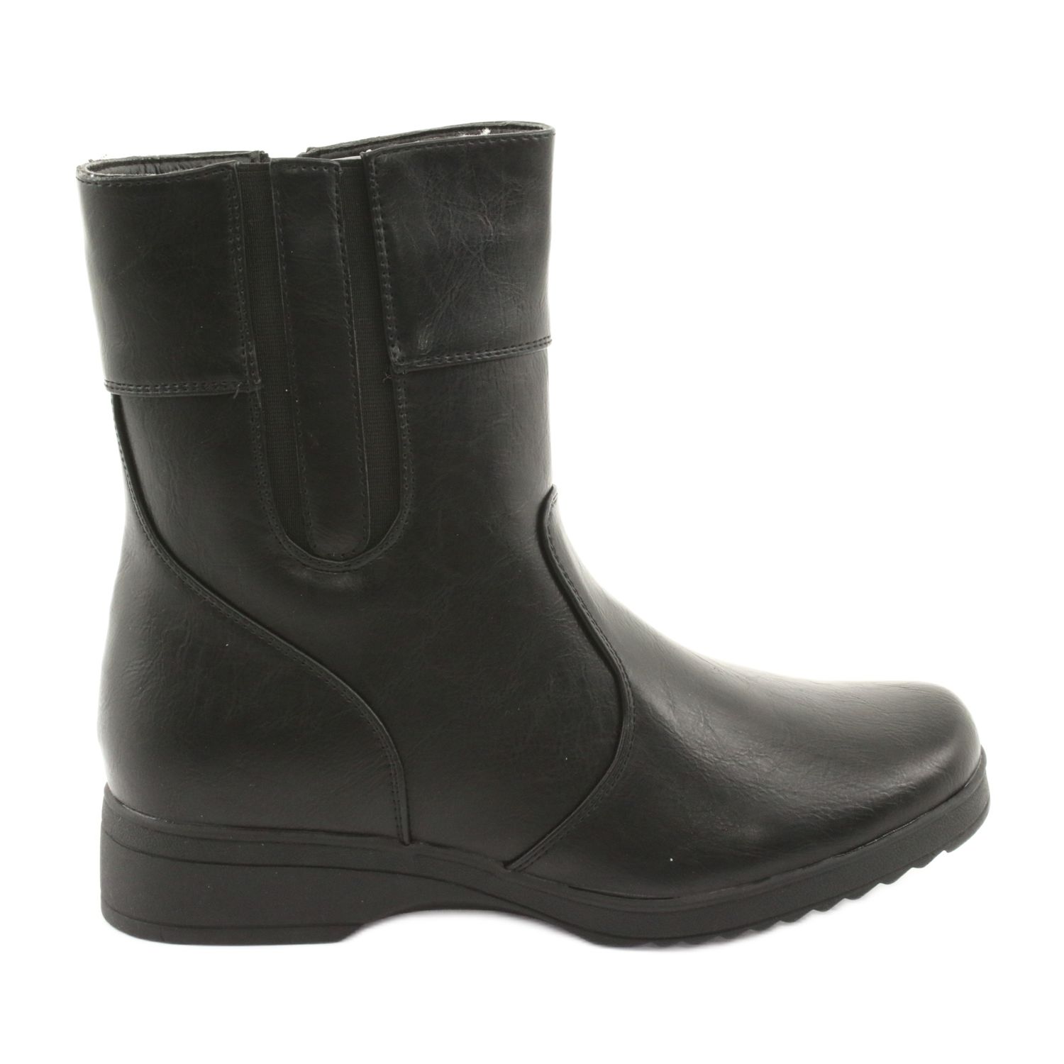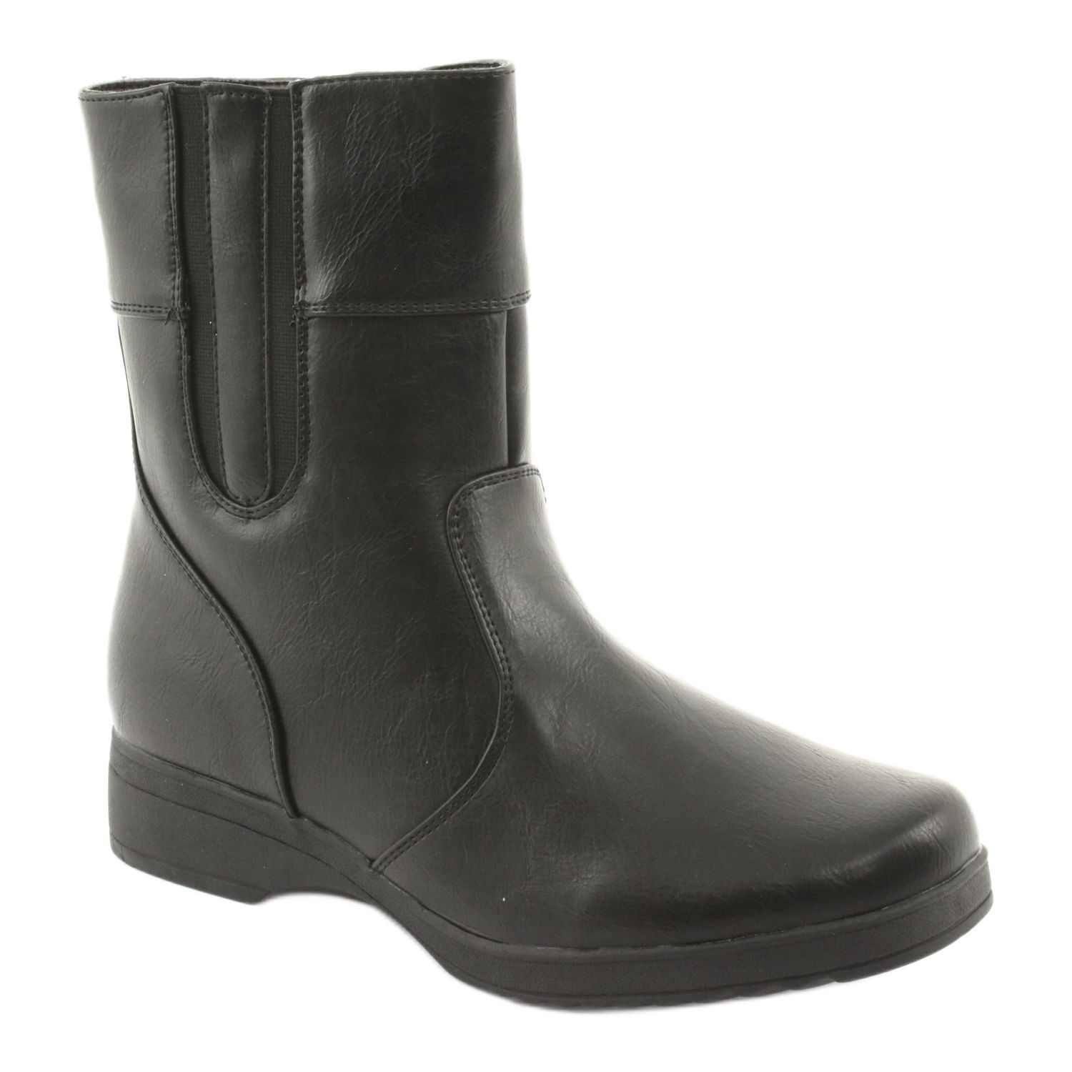 Elegant and comfortable women's boots made of smooth ecological leather. A classic, simple cut with a slightly rounded nose makes the model match both everyday and more elegant stylizations. A stable cotton with a height of 3.5 cm and a thicker plastic sole ensure the comfort of walking and good adhesion.