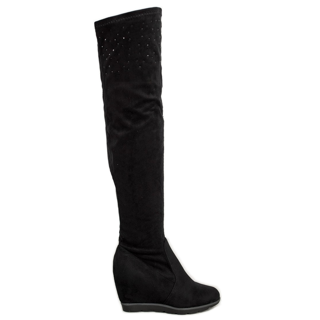 Discover elegance and comfort with a wedge boot from the SHELOVET brand. These extremely fashionable boots in a timeless black color are made of high-quality ecological suede leather, which makes them look extremely stylish and luxurious. The upper reaching below the knee, decorated with subtle shimmering rhinestones, gives them a unique character, which makes them a perfect complement to any evening styling.